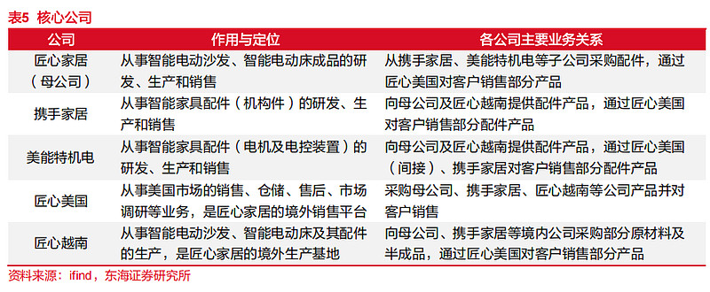 通过子公司美能特机电和携手家居,专门从事核心部件的研发、生产和销售,实现电机、电控、机构件等核心零部件100%自产率。在研发设计上,以美国团队为主进行概念设计,中国和越南团队负责落地实现,确保产品符合国际潮流。在生产制造上,拥有中国常州和越南两大生产基地。在海外销售与服务上,通过匠心美国等海外子公司,直接负责境外市场的销售与售后服务,打通了从工厂到终端客户的链路。
