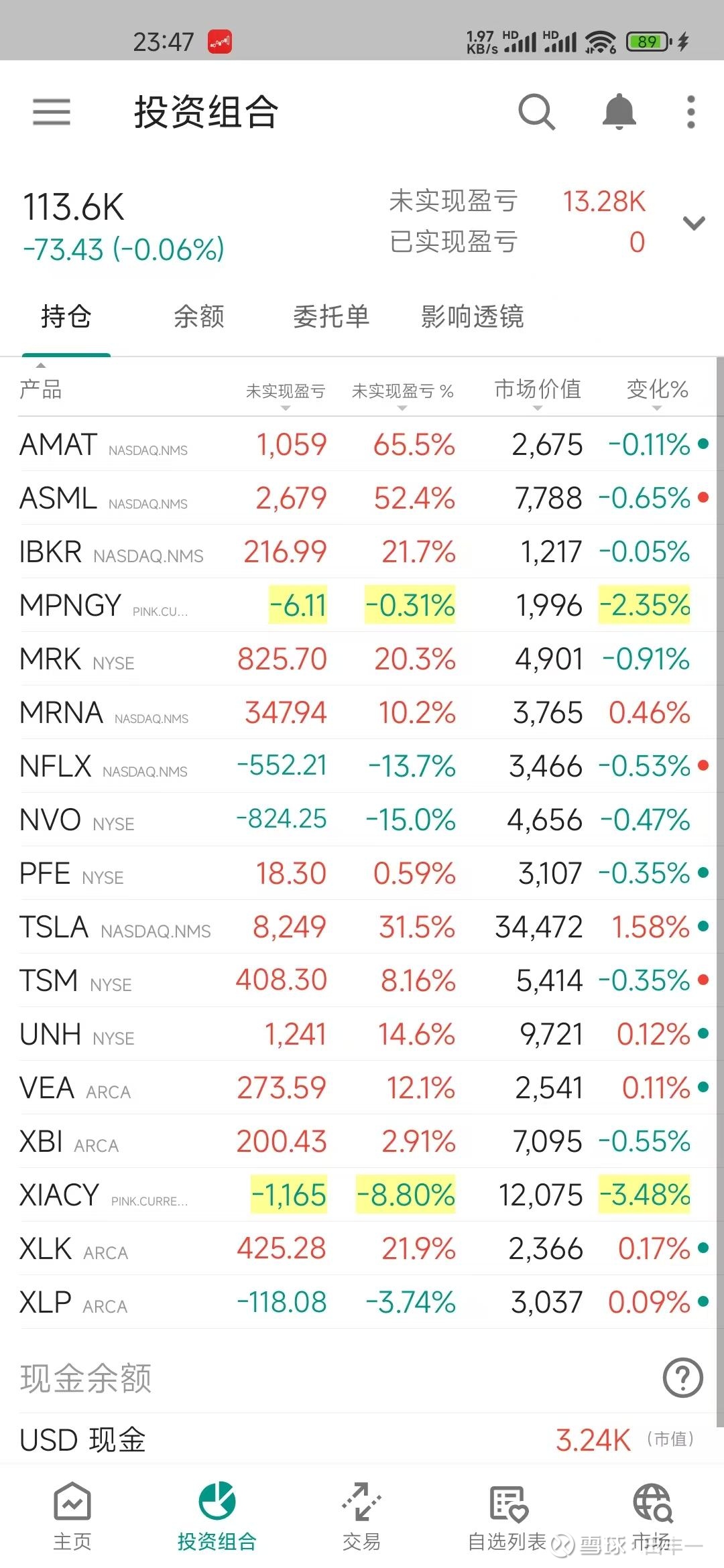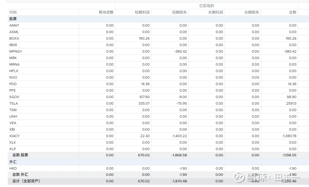 已实现盈亏:虽然特斯拉赚了点,但架不住其他几只票割肉,全年已实现净亏损约 1,200 美元。
