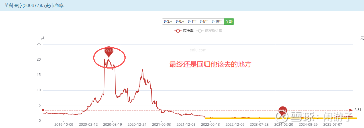 比如你喜欢一个制造业英科医疗,你不要太偏离净资产,4年前英科最高到过20倍净资产,最终还是回归1倍左右,今年最低0.8倍。你如果懂得这个定价原则,最起码不会再吃亏上当。