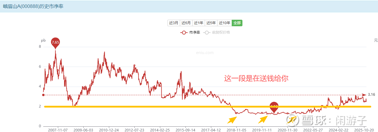 比如你喜欢峨眉山,你心中有数合理应该在2PB左右,但是疫情期间给到你1.2PB的时候,你知道他在给你送钱了,你只需要走过去,弯下腰,捡起来。在股市里赚钱很难,捡钱很容易。