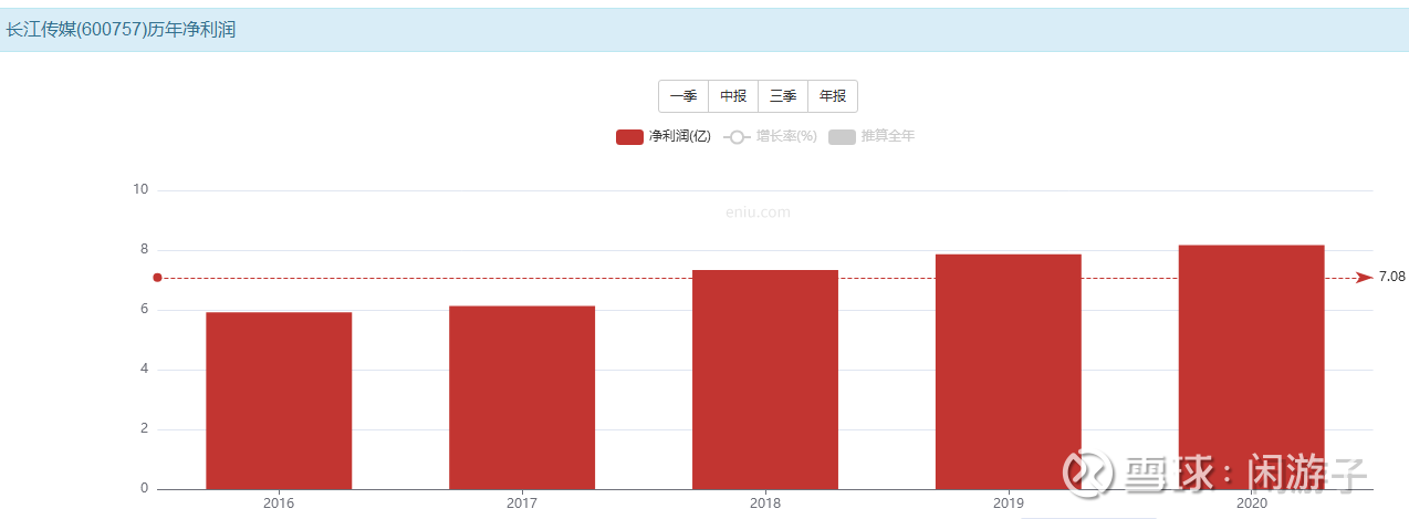 长江传媒主营是给湖北的学生发教材,这个生意模式是稳定的。查看过去5年的利润6-8亿,也是稳定的。可以得到第一个结论,长江传媒的利润能力6-8亿。注意,这里用了利润能力这个词,而不是利润。