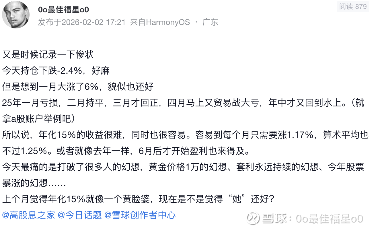 周一大跌,几个账户加起来亏了小十万块,平时老爱卖卖惨说亏麻了,周一那是真的麻了,全麻。当然,这不是个人投资历史上的极值,去年4月7日关税大战当天就砸去了20+W了,把心理阈值一下子打开了。非是承平日久,受不起打击了,而是一月份给了我高到有点不切实际的暴富幻想。