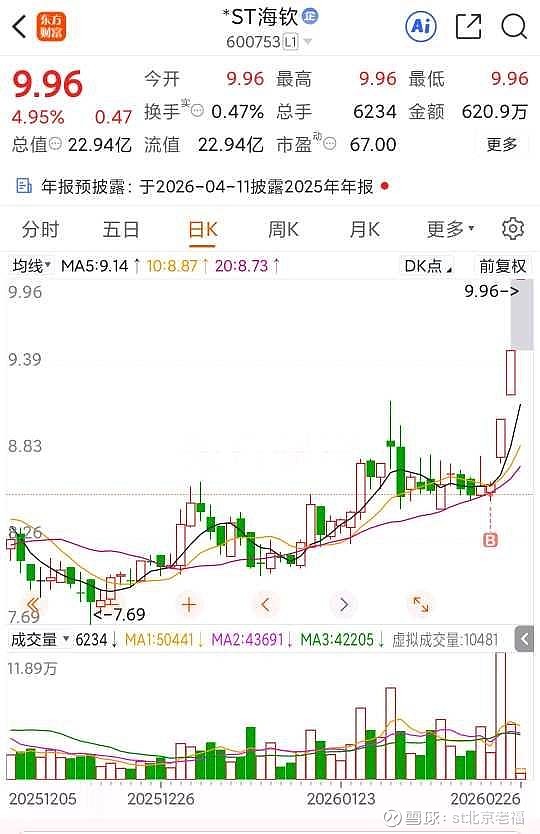 $*ST海钦(SH600753)$
