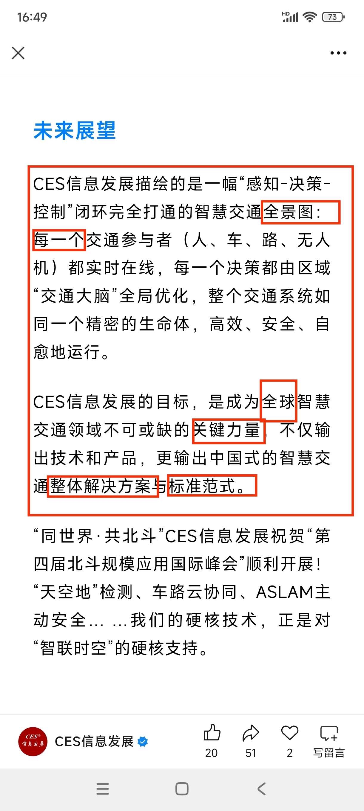CES信息发展的目标,是成为全球智慧交通领域不可或缺的关键力量,不仅输出技术和产品,更输出中国式的智慧交通整体解决方案与标准范式”