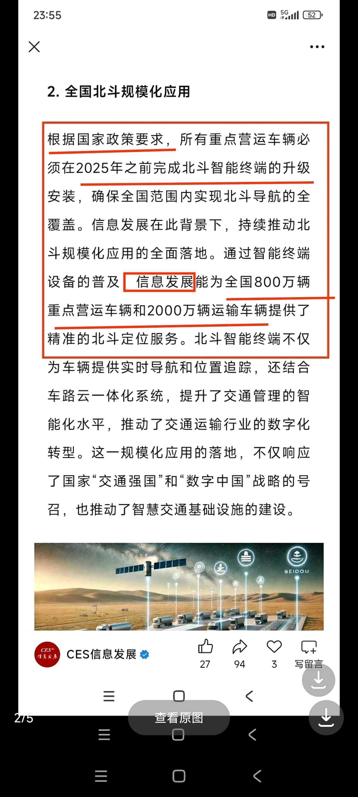 “行业预判2025年底前(最迟不晚于2026年上半年),全国12吨以上货车及部分区域4.5吨级中型货车将全面完成北斗智能设备换装”