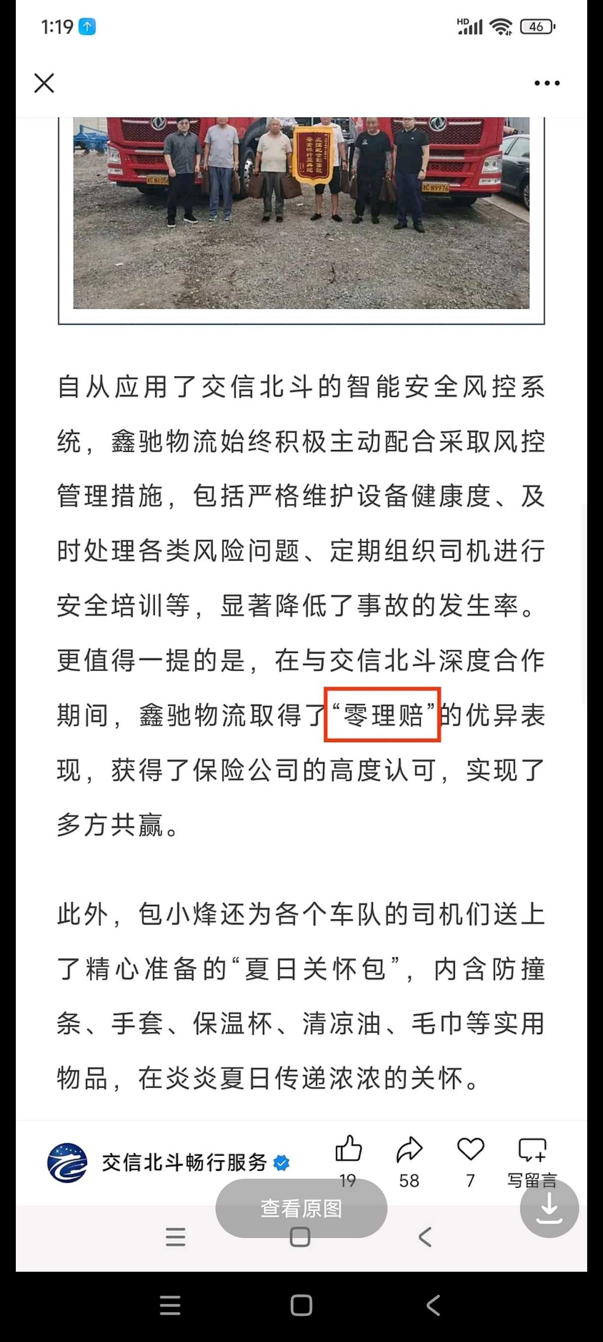 ——这是一段非常重要的信息!它明确表示了,由于上述大型货车在安装了信息发展的北斗终端后,事故发生率大幅降低,导致保险公司的赔付率随之大幅降低,从而推动保险公司主动、积极向全国范围内的数亿辆汽车推广这种“科技风险降赔方案”!