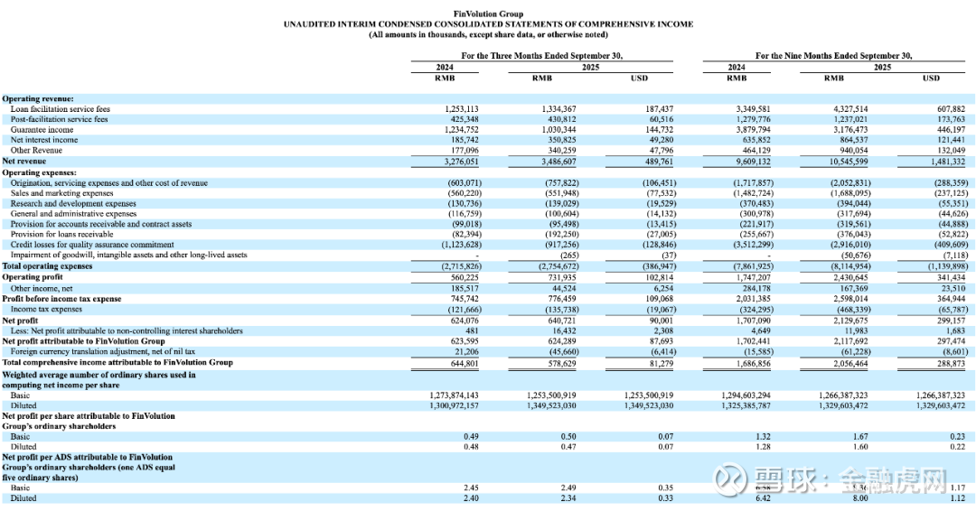 从净收入来看,2025年第三季度信也科技净收入为人民币34.866亿元(合4.898亿美元),相较于2024年同期的人民币32.761亿元有所增加。这一增长主要得益于贷款便利服务费、净利息收入和其他收入的增长,尽管担保收入的减少在一定程度上进行了抵消。