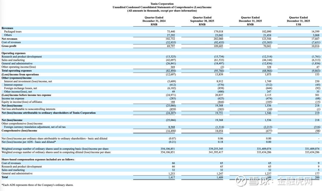从净收入方面来看,2025年途牛净收入为5.78亿元人民币(8260万美元),较2024年同比增长12.5%,展现出一定的增长态势。其中,跟团游业务成为增长亮点,2025年跟团游收入达4.935亿元人民币(7060万美元),同比增长21.1%,组织游和自助游的增加是推动这一增长的主要原因,这或许反映出消费者对于跟团游模式的需求在进一步释放,途牛在该领域的产品和服务策略取得了一定成效。