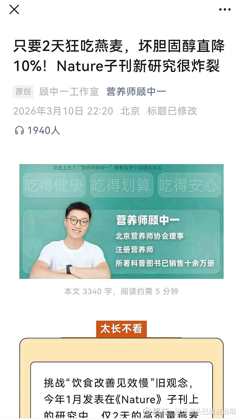 最新的研究成果,短时间狂吃燕麦能快速降脂
