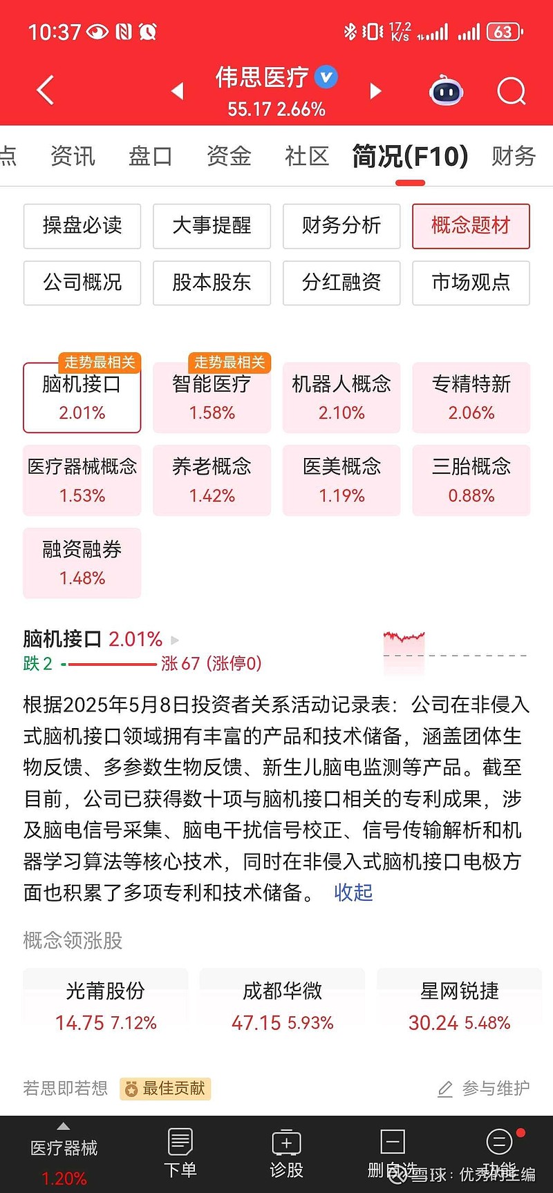 伟思医疗,脑机接口龙头,等你慢慢涨不着急。新东西就这四样:未来能源(氢能)脑机接口 量子科技 航天未来能源选定上能电气,氢能源+储能+逆变器,业绩好,伊朗局势导致全球特别西方加速户储,俄乌战争之后即是如此。航天:铂力特脑机:伟思医疗,业绩最好的脑机接口股,没有之一。量子不参与了,都是亏钱的货。$伟思医疗(SH688580)$$铂力特(SH688333)$