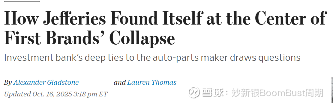 First Brands刚刚完成一项6月份的私人信贷交易,筹集约2.5亿美元,并未涉及Jefferies。就说这私募信贷市场多草率吧~