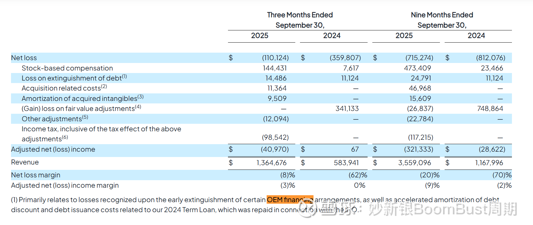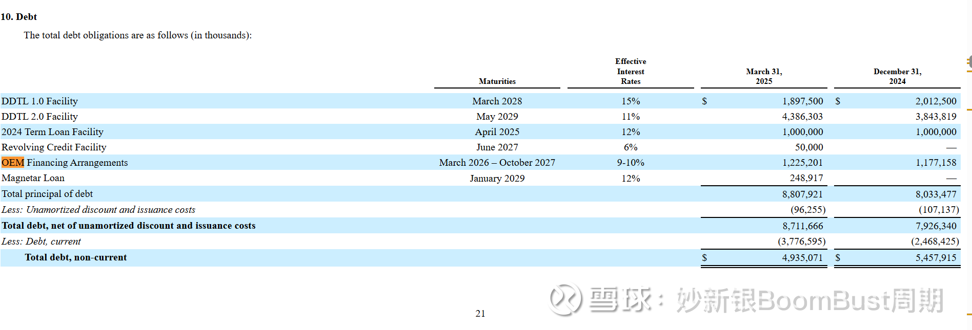 脚注披露了 OEM 融资——硬件供应商为CoreWeave设备提供贷款或延期付款。在 2025 年3月,这些非现金安排总额 12 亿美元,资金成本为9.1%。(猜猜这OEM是谁呢?)