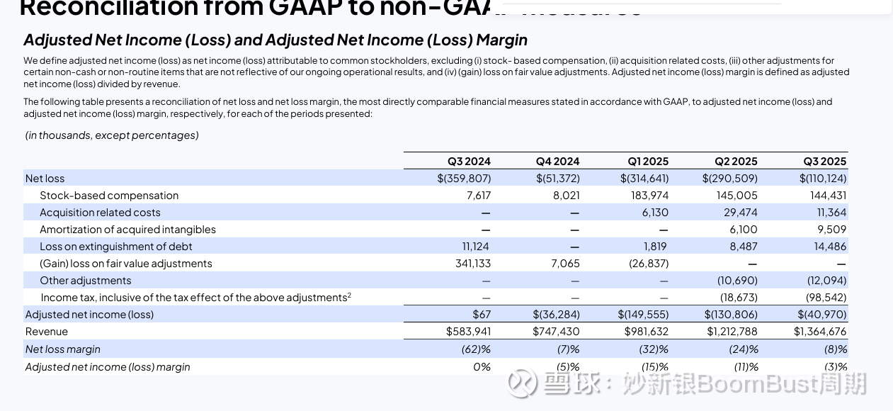 这个数字看起来令人印象深刻,直到你看到调整内容详情:6.3 亿美元的折旧、3.1 亿美元的利息,以及 1.4 亿美元的股票补偿都被加回到总额中。剥离这些调整,实际的 GAAP 结果是季度亏损 -1.1 亿美元。