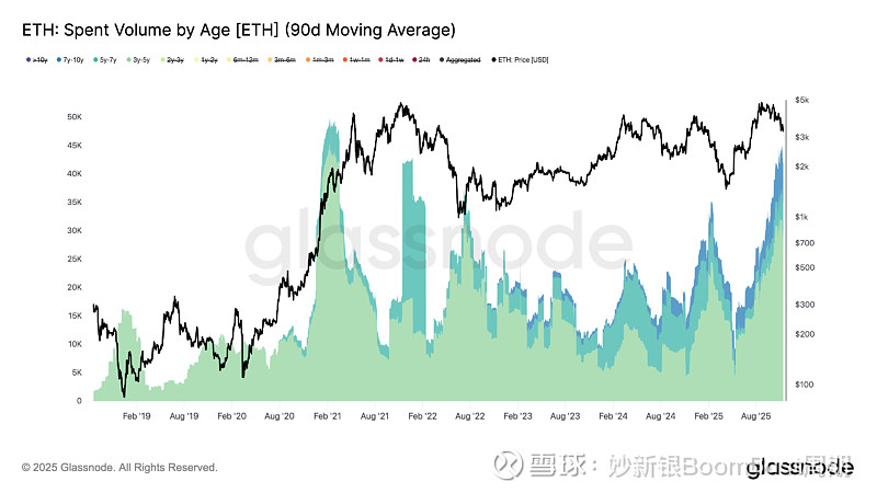自8月底以来,随着以太坊从其新高回落,持有3-10年的持有者已将他们的平均每日抛售增加到45K ETH/天(90D-SMA)。这标志着自2021年2月以来资深投资者的最高支出水平。