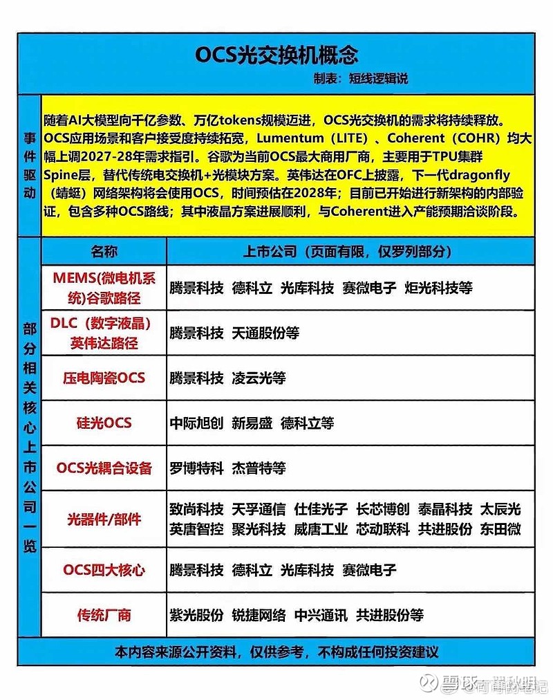 近期,OCS光交换机需求不断释放,相关概念股值得留意。不过都在高位,谨慎乐观!