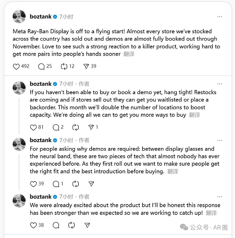 首款AR眼镜全美售罄,试戴预约排到11月 | Meta CTO证实市场反响超预期,本月将销售门店翻倍,AR眼镜真正的拐点来了,利好舜宇
