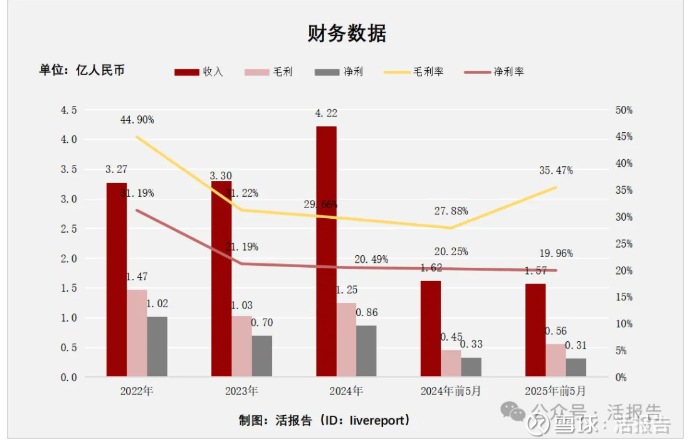 毛利分别约为人民币1.47亿元、1.03亿元、1.25亿元、0.45亿元及0.56亿元,年复合增长率为-7.71%;