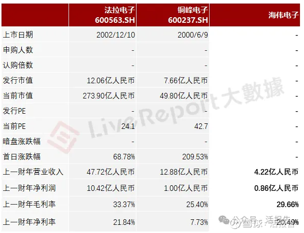 本次选取的同行业对比公司为:法拉电子(600563.SH)、铜峰电子(600237.SH)