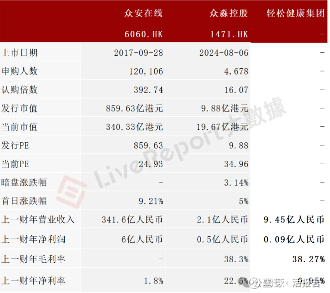 本次对比公司可选取:众安在线(6060.HK)、众淼控股(1471.HK)