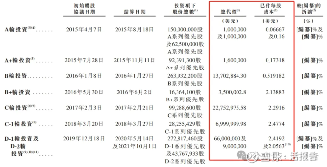 公司共计进行过七次融资行为,最近一次融资时间为2019年12月,此次约募集7500万美元,每股成本分别为2.4192及2.0563美元。