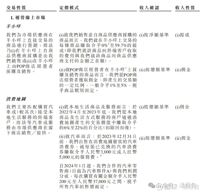 公司亦自2022年4月经营汽车零售O2O平台消费地图,该平台目前主要与汽车零售商合作吸引在线流量,使其能够在当地实体店线下购车;及在较小程度上,消费地图亦可让消费者在在线购车。公司将(i)羊小咩上的市场供应商(包括商品供应商及POP商店经营者)及(ii)消费地图上的市场供应商(包括汽车零售商,且于往绩记录期间,包括汽车零售商及本地生活商品及服务商户)视为公司的业务伙伴。在极小范围内,公司为商业伙伴提供广告服务。