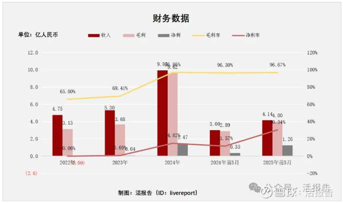 毛利率分别约为65.80%、69.41%、96.86%、96.30%及96.67%;