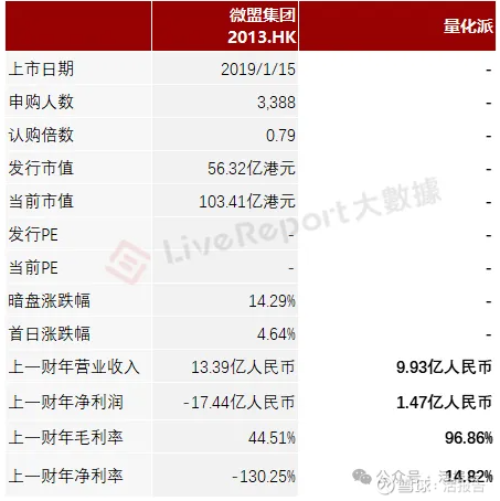 同行业IPO可比公司有:微盟集团(2013.HK)