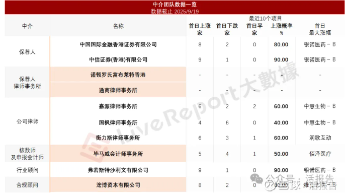 据LiveReport大数据统计,量化派中介团队共计10家,其中保荐人2家,近10家保荐项目数据表现良好;公司律师共计3家,综合项目数据表现平平。整体而言中介团队历史数据表现尚可。