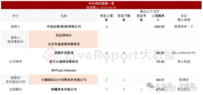 据LiveReport大数据统计,东方科脉中介团队共计8家,其中保荐人1家,保荐项目数据表现卓越;公司律师3家,综合项目数据整体不尽如意。整体而言中介团队历史数据整体表现不尽如意。