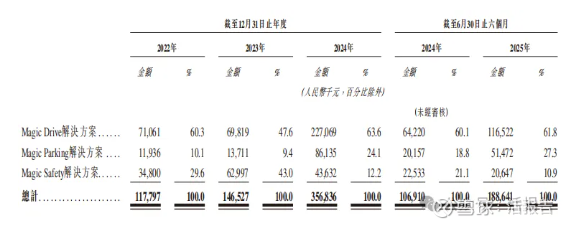 于往绩记录期间,公司的收入来自销售智能驾驶解决方案。公司提供一套全面的解决方案及服务,支持L0级至L4级智能驾驶功能,产品组合包括Magic Drive(行车解决方案)、Magic Parking(自 动泊车解决方案)和Magic Safety(主动安全解决方案)。
