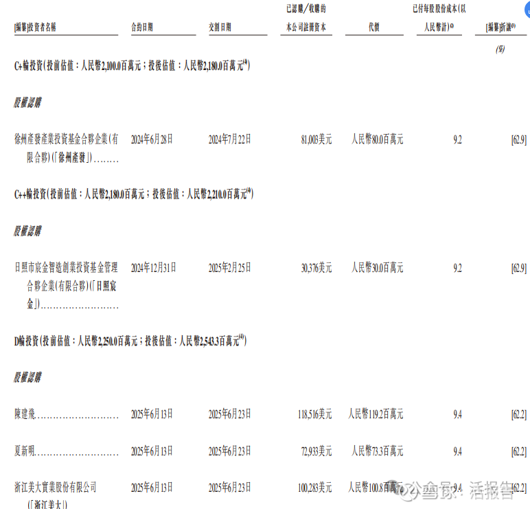 其他主要投资者:恒耀(英恒科技(1760.HK))、睿鲸投资者、宁波澜亭、KTVG、亿宸资本投资者、博信資本