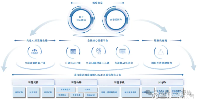 公司构建了以可复用的自研核心IP库、全套AI处理器工具链以及适用于多行业的音视频AI算法库为基础的全系列核心技术平台。凭借先进制程SoC设计能力,公司可快速集成并扩展核心IP于多元化应用领域,高速响应客户各式定制化需求,提供灵活的系统级解决方案,实现芯片+算法效率最大化。