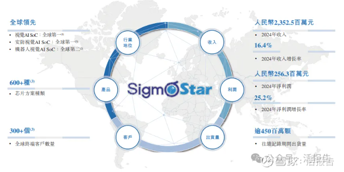 公司是全球领先的视觉AI SoC的无晶圆厂设计商及供货商,2025年上半年收入14.02亿元,净利润1.2亿元,毛利率33.12%。
