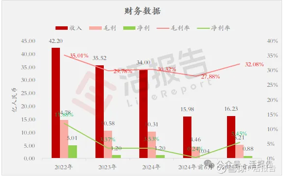 收入分别约为人民币42.20亿、35.52亿、34.00亿、15.98亿、16.23亿,2025年前6月同比+1.56%;