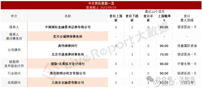据LiveReport大数据统计,极米科技中介团队共计7家,其中保荐人1家,近10家保荐项目数据表现良好;公司律师共计2家,综合项目数据表现不错。整体而言中介团队历史数据表现较好。