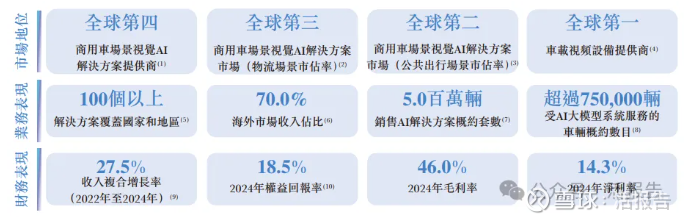 2024年,公司在全球商用车视觉AI解决方案市场的份额达6.4%,位居第四。