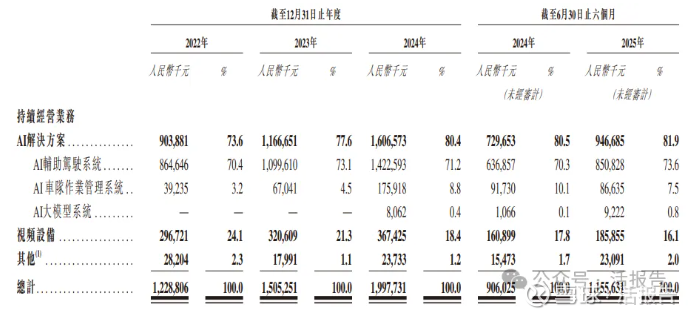 于往绩记录期间,公司产生的收入主要来自(i)AI辅助驾驶系统、(ii)AI车队作业管理系统及(iii)视频设备。