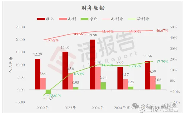 收入分别约为人民币12.29亿、15.05亿、19.98亿、9.06亿、11.56亿,2025年前6月同比+27.55%;