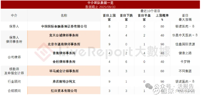 据LiveReport大数据统计,锐明技术中介团队共计8家,其中保荐人1家,近10家保荐项目数据表现一般;公司律师共计2家,综合项目数据一般。整体而言中介团队历史数据表现一般。