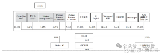 Cheuk Sing Ho持股18.92%、曹少山先生持股1.68%、张向东先生通过Nineteen Seventy-Seven持股1.45%、受限制股份单位计划Distinct Partners I,持股4.43%,创始人王志远先生为公司的最终单一最大股东,能够行使合计26.48%的投票权。