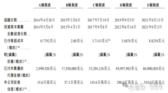 公司历经5轮融资,E轮融资后,公司投后估值是5.1亿美元。