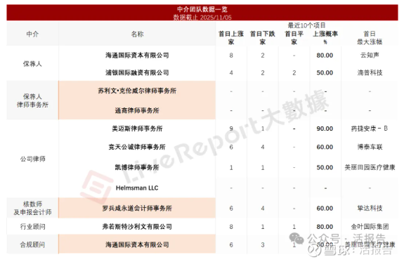据LiveReport大数据统计,卓正医疗中介团队共计11家,其中保荐人2家,近10家保荐项目数据表现一般;公司律师共计4家,综合项目数据表现不足。整体而言中介团队历史数据表现有待改进。