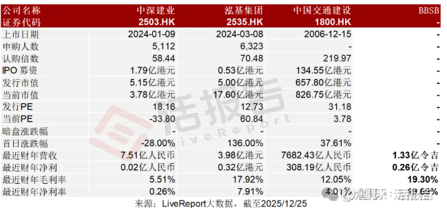 同行业IPO可比公司:中深建业(2503.HK)、泓基集团(2535.HK)、中国交通建设(1800.HK)