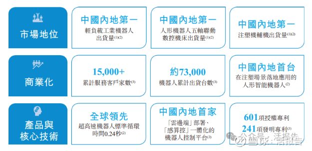 公司在轻负载工业机器人以及轻工业领域的工业机器人方面处于行业领先地位。以2024年轻负载工业机器人的出货量以及轻工业领域工业机器人的出货量计,公司在中国内地工业机器人解决方案市场的所有供货商中均排名第一。