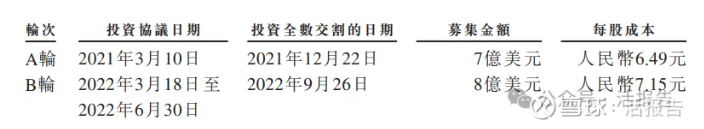 在2022年3月至6月的B轮融资中,每股成本约为7.15元人民币,对应公司的投后估值约为467.63亿人民币。