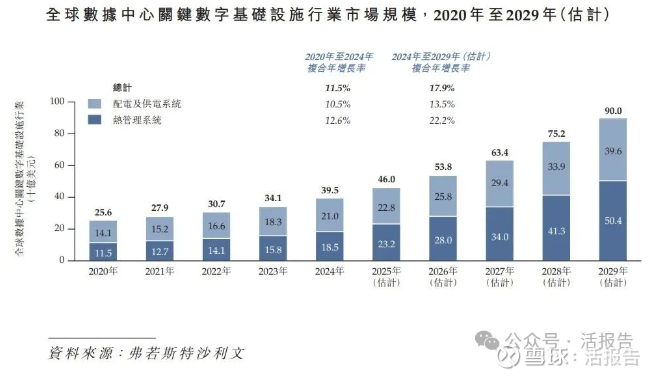 根据弗若斯特沙利文(Frost&Sullivan)的报告,全球数据中心关键数字基础设施行业的市场规模由2020年的约256亿美元增至2024年的约395亿美元,复合年增长率为11.5%。预计市场规模到2029年将达到约900亿美元,2024年至2029年的复合年增长率为17.9%。AIDC有望成为市场增长的核心驱动力,并占据增量需求的大部分,未来呈现加速发展趋势。