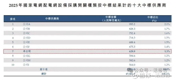 于2025年,根据国家电网就开关柜类别披露的中标结果,公司在所参与的省级地区的获授标供货商中排名第7位。于2025年,根据中国南方电网披露的中标结果,公司在所有中标供货商中排名第八。