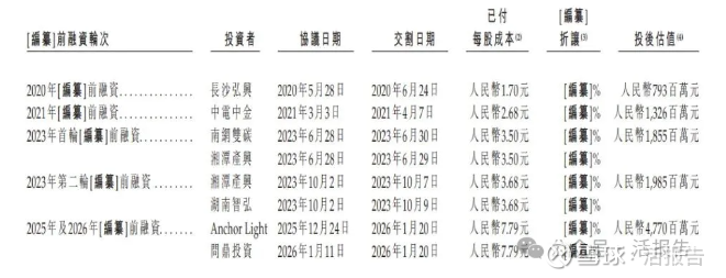 公司上市前经历了5轮融资,在2025年及2026年的上市前融资中,公司的投后估值约为47.7亿人民币。