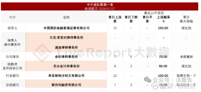 据LiveReport大数据统计,惟远能源中介团队共计7家,其中保荐人1家,近10家保荐项目数据表现出色;公司律师共计1家,综合项目数据表现尚可。整体而言中介团队历史数据表现值得肯定。