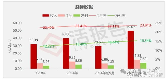 收入分别约为人民币32.39亿、40.00亿、29.68亿、49.67亿,2025年前9月同比+67.37%;